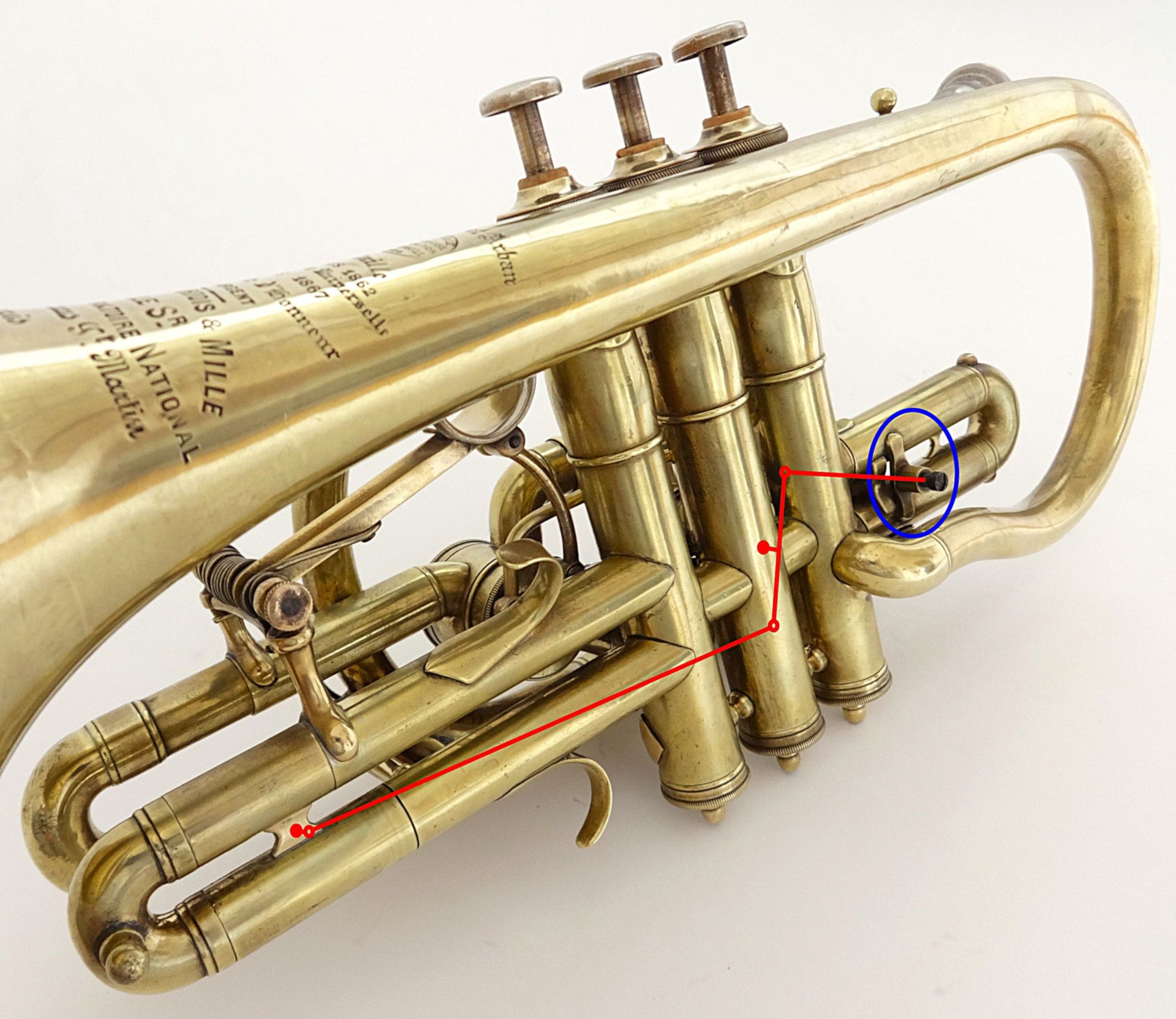 Das "NOUVEAU CORNET ARBAN" beinhaltete eine beeindruckende aber zu komplizierte Konstruktion mit einem zusätzlichen Drehventil, mit Hebeln, Verbindungsstreben, zwei Zahnstangen und -räder sowie einer langen Schneckenrad-Welle in geschraubten Lagerböcken zur Veränderung von Rohrlängen.